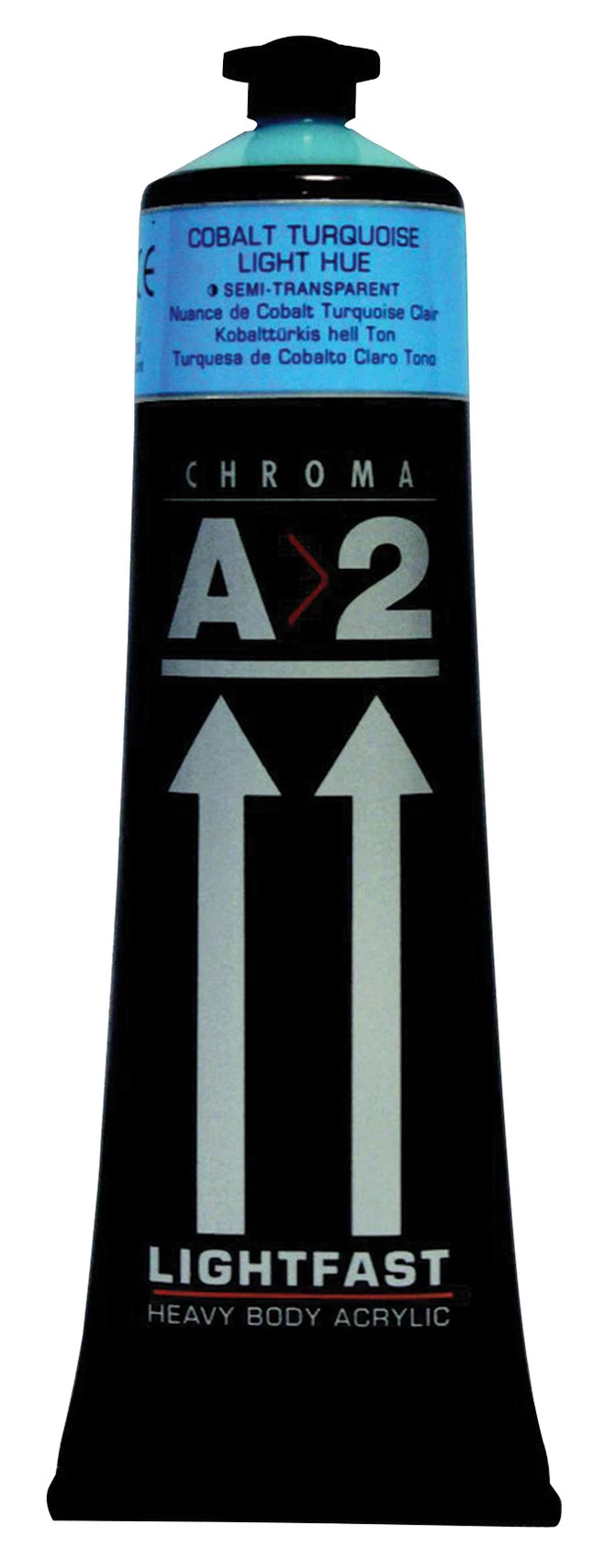 Chroma A2 Lightfast Heavy Body Cobalt Turquoise Light Hue Acrylic Paint comes in a tube of 4 oz. capacity and is non-toxic. High quality paint is affordable and provides the same intensity, consistency and strong pigmentation as professional acrylics. Heavy-bodied paint with a Lightfast finish has good mixing qualities and dries to semi gloss. Freeze/Thaw stable.