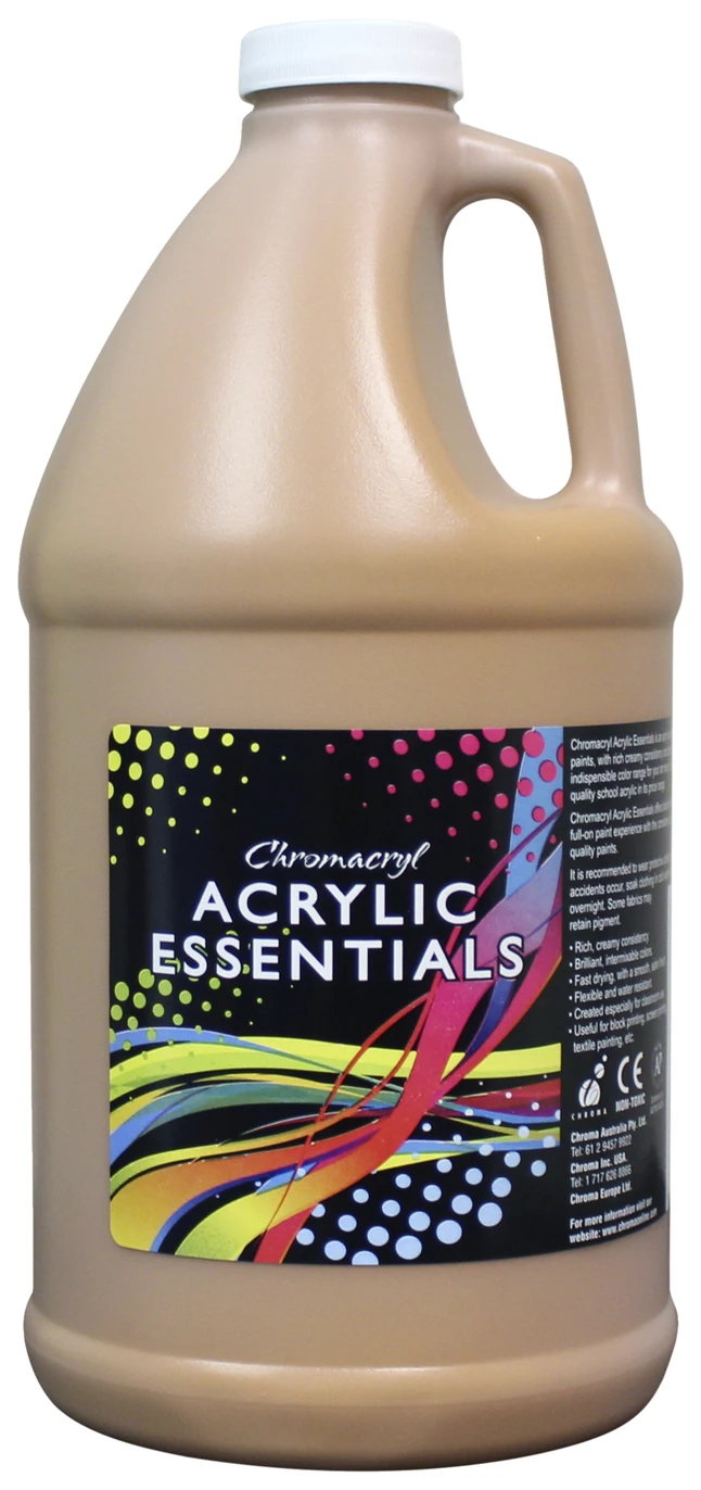 Chroma Acrylic Essentials Raw Sienna Paint created for classroom use can be ideally used for acrylic painting techniques, silk screening and block printing. 1/2 gal Paint dries to a water resistant matte finish and renders strong, vibrant colors at an economical price. Paint that can be cleaned with soap and water never needs shaking or stirring. Non-toxic paint will not separate. Freeze/Thaw stable.