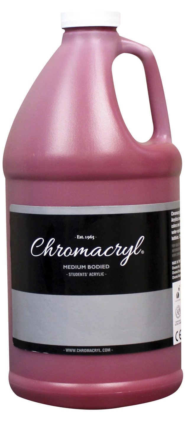 Chromacryl Students Acrylic Paint in cool Red comes in a bottle of capacity 0.5 gal and is non-toxic. Paint that is creamy and intermixable cleans up with soap and water easily. Paint finds its application from finger painting to fine art, silk screening to block printing and construction paper to textiles. Paint dries flexible and does not settle in the container eliminating the need for shaking before use. Freeze/thaw stable acrylic paint allows you to move from one technique to another without changing paints and is compatible with all Chroma acrylic mediums. (Test first with other brands.)