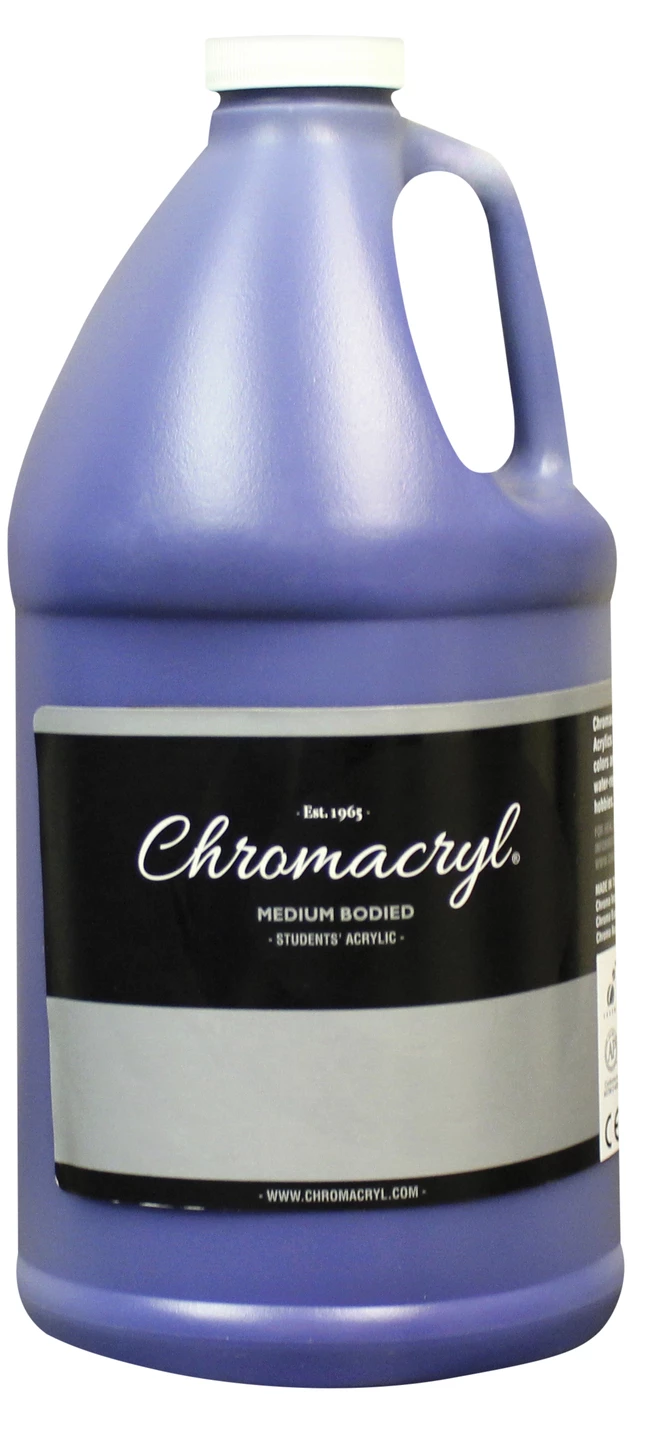 Chromacryl Students Acrylic Paint in warm Blue comes in a bottle of capacity 0.5 gal and is non-toxic. Paint that is creamy and intermixable cleans up with soap and water easily. Paint finds its application from finger painting to fine art, silk screening to block printing and construction paper to textiles. Paint dries flexible and does not settle in the container eliminating the need for shaking before use. Freeze/thaw stable acrylic paint allows you to move from one technique to another without changing paints and is compatible with all Chroma acrylic mediums. (Test first with other brands.)