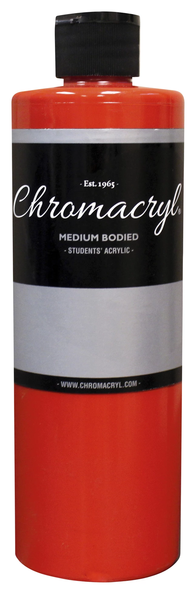 Chromacryl Students Acrylic Paint in warm Red comes in a bottle of capacity 1 pt and is non-toxic. Paint that is creamy and intermixable cleans up with soap and water easily. Paint finds its application from finger painting to fine art, silk screening to block printing and construction paper to textiles. Paint dries flexible and does not settle in the container eliminating the need for shaking before use. Freeze/thaw stable acrylic paint allows you to move from one technique to another without changing paints and is compatible with all Chroma acrylic mediums. (Test first with other brands.)