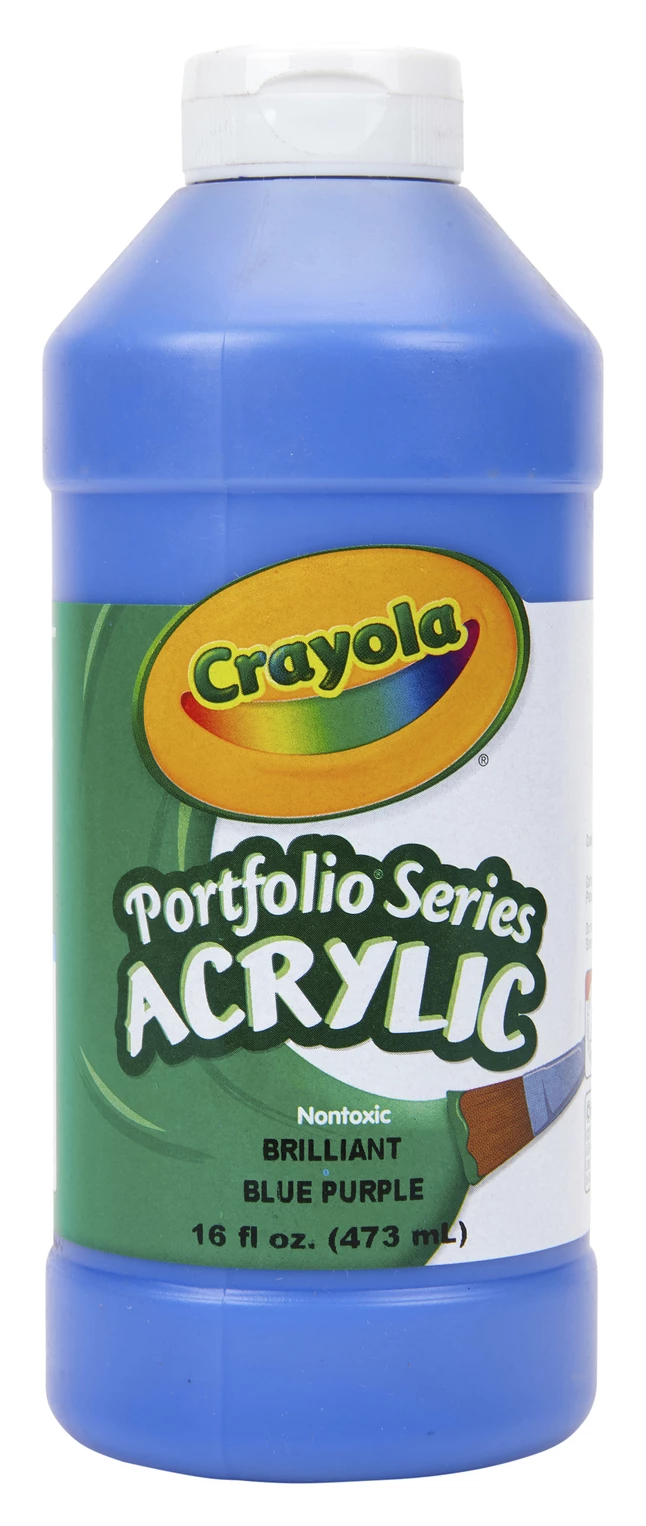 Crayola Portfolio Series Brilliant Blue Purple Acrylic Paint comes in 1 pt capacity bottles. Paint adheres permanently to paper, wood, fabric and clay. Paint offers the student artist a versatile, quality acrylics and dries to a flexible water-resistant finish. Non-Toxic paint cleans up with soap and water and is ideal for traditional acrylic painting. Paint finds its application in airbrushing, printmaking and marbling without chemical additives.
