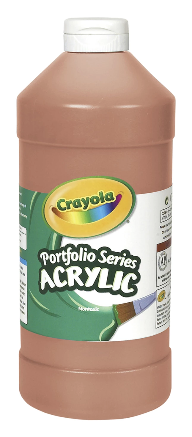 Crayola Portfolio Series Burnt Sienna Acrylic Paint comes in 1 pt capacity bottles. Paint adheres permanently to paper, wood, fabric and clay. Paint offers the student artist a versatile, quality acrylics and dries to a flexible water-resistant finish. Non-Toxic paint cleans up with soap and water and is ideal for traditional acrylic painting. Paint finds its application in airbrushing, printmaking and marbling without chemical additives.