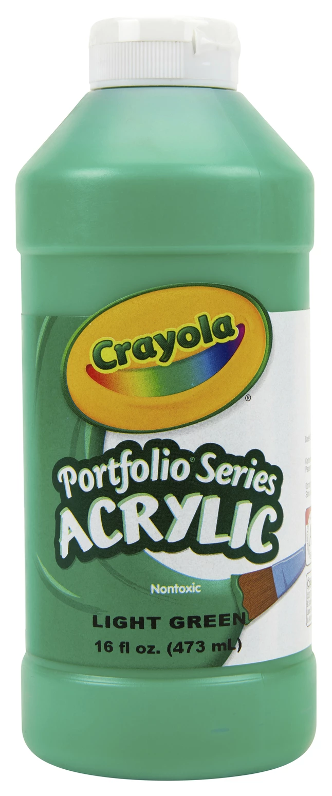 Crayola Portfolio Series Light Green Acrylic Paint comes in 1 pt capacity bottles. Paint adheres permanently to paper, wood, fabric and clay. Paint offers the student artist a versatile, quality acrylics and dries to a flexible water-resistant finish. Non-Toxic paint cleans up with soap and water and is ideal for traditional acrylic painting. Paint finds its application in airbrushing, printmaking and marbling without chemical additives.