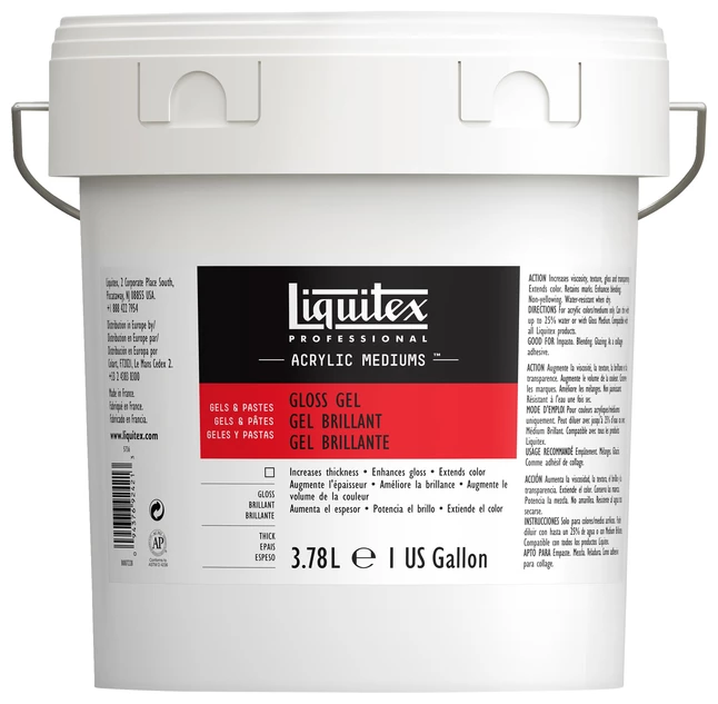 Liquitex Heavy-Body Gloss Heavy Gel Acrylic Medium in 1 gallon wide mouth container is transparent and simulates the effect of oil paint when blended with colors. Non-toxic gel medium is ideal for extending acrylics for creating textures, glazes and impasto effects. Heavy bodied gel medium does not change the shade or color.